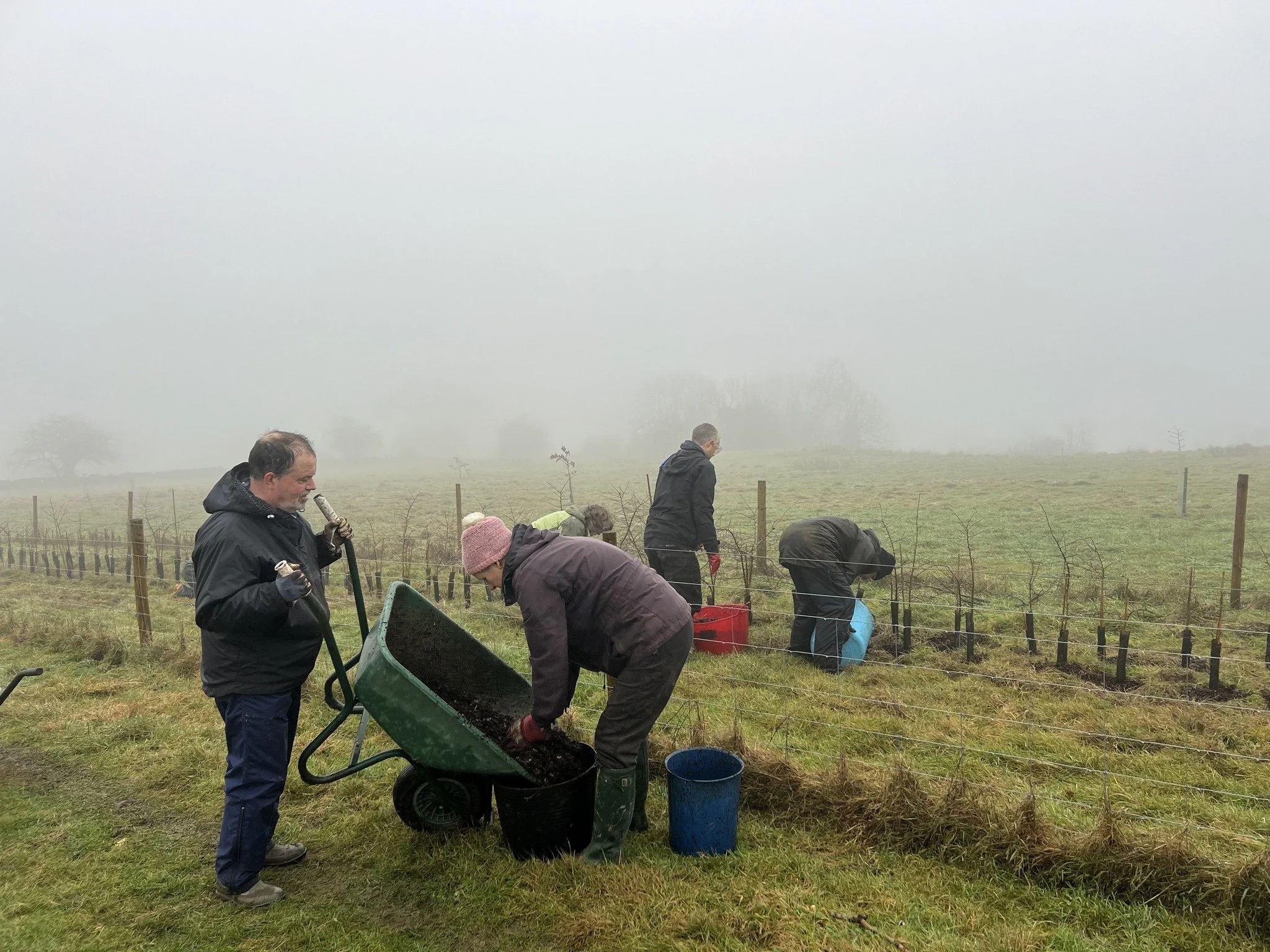 A very cheering morning up on Wild Maple Field. Together we mulched almost all the hedgerow, it was a good work out pushing a laden wheelbarrow up the field. We shared a really lovely sense of community, as well as helping the wildlife that will soon enjoy the benefits of the native hedgerow. Can't think of a better way to spend a very murky January morning!